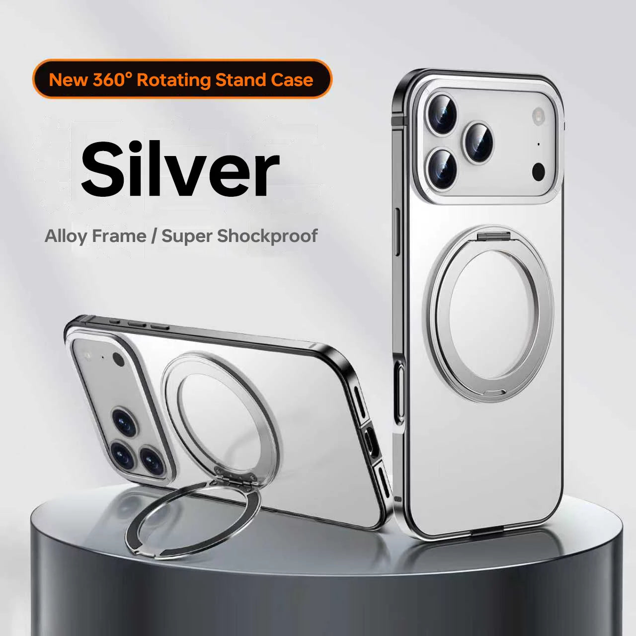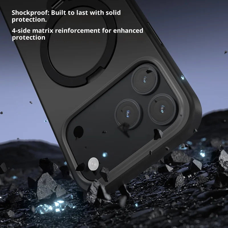 Puhelinkotelo iPhonelle 14, 15, 16, 17 Pro Max Pyörivällä Jalustalla
