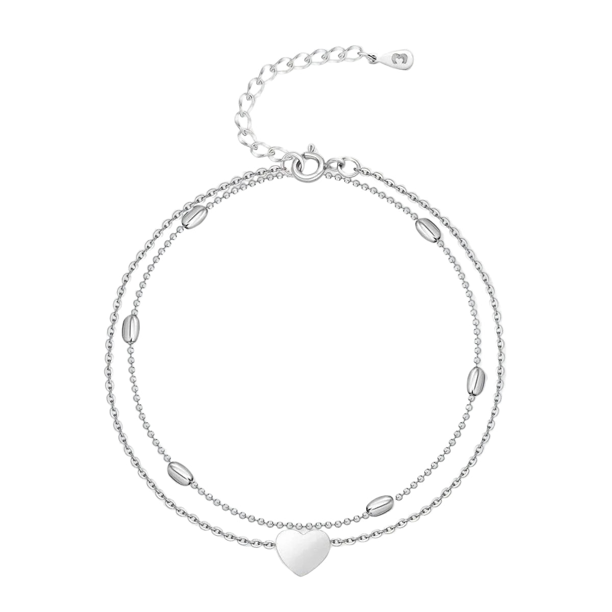 Nilkkakoru on suunniteltu kaksinkertaisella ketjulla, joka lisää syvyyttä ja viehätystä. Hienovarainen sydänkoriste tekee siitä täydellisen valinnan niin arkeen kuin juhlaan.