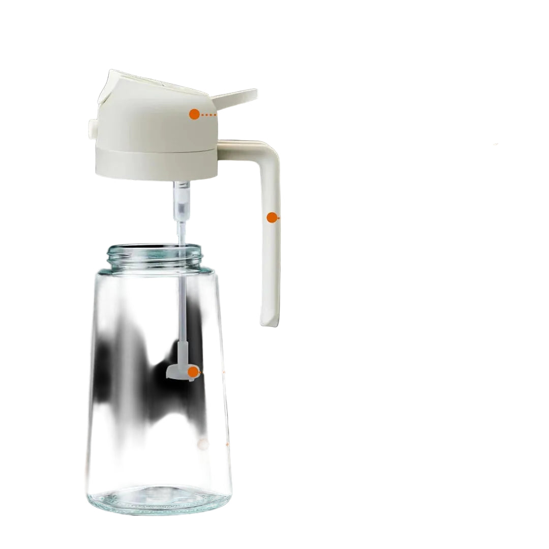 Monipuolinen 2-in-1 oliiviöljysumutin tekee ruoanlaitosta vaivattomampaa ja nautinnollisempaa. Sen avulla voit hallita öljyn käyttöä tarkasti ja tyylikkäästi.