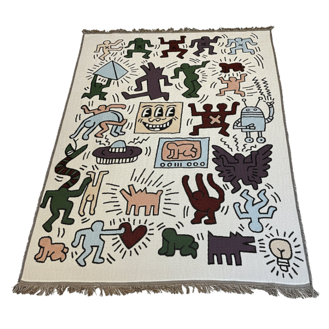 Huovan design on inspiroitu Keith Haringin taiteesta, mikä tekee siitä erottuvan lisän sisustukseen. Se on ihanteellinen valinta niin sisä- kuin ulkotiloihin, ja se tuo taiteellista ilmettä jokaiseen hetkeen.