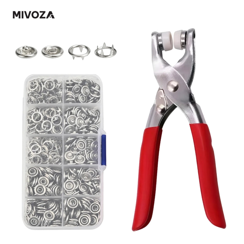 Setti sisältää laadukkaat metallinapit ja käytännölliset pihdit, jotka tekevät työskentelystä vaivatonta. Olipa kyseessä vaatteet, laukut tai muut luovat projektit, tämä sarja on täydellinen valinta.