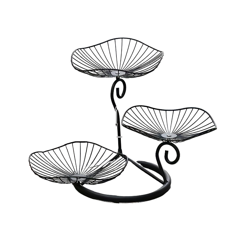 TrayTiers 3-kerroksinen kori tuo eleganssia ja toimivuutta kotiisi. Tämä tyylikäs ja käytännöllinen teline on täydellinen lisä keittiöön, olohuoneeseen tai sohvapöydälle, tarjoten runsaasti tilaa hedelmille, välipaloille ja jälkiruoille.