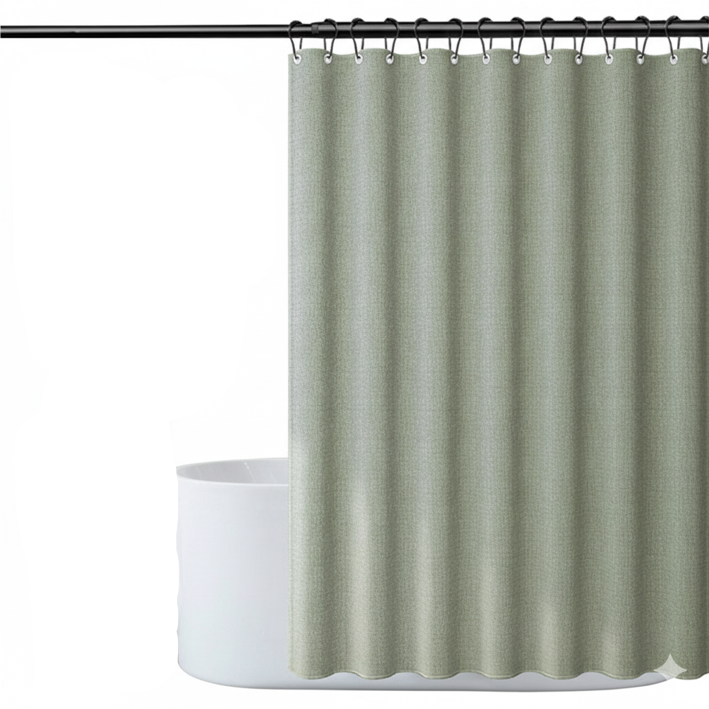 Lisää kylpyhuoneeseesi rauhoittavaa tyyliä ja luonnollista eleganssia tämän vaaleanvihreän suihkuverhon avulla. Sen pehmeä rakenne luo kylpylätunnelmaa, joka tekee suihkuhetkistäsi erityisiä.