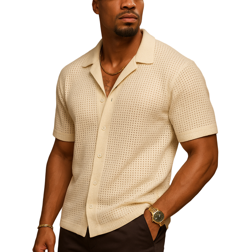 Tämä miesten kevyt kesäpaita tarjoaa täydellisen yhdistelmän tyyliä ja mukavuutta kuumina kesäpäivinä. Sen hengittävä materiaali ja klassinen muotoilu tekevät siitä erinomaisen valinnan sekä ranta- että kesäaktiviteetteihin.