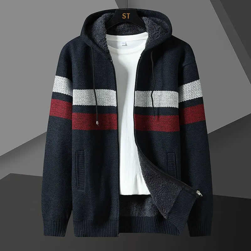 Tämä miesten neulehuppari yhdistää mukavuuden ja tyylin täydellisesti. Se on suunniteltu tarjoamaan lämpöä ja helppoutta jokapäiväiseen käyttöön, olitpa sitten kotona tai ulkona.