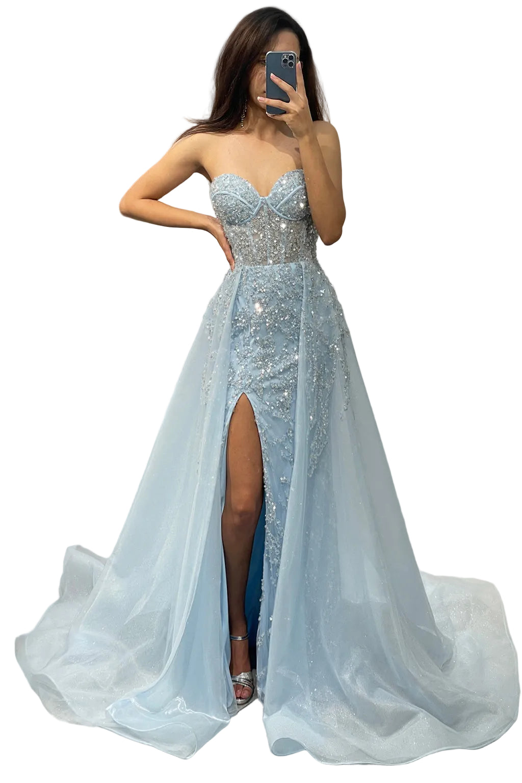 Meidän A-linjainen korsettipallomekko on suunniteltu korostamaan naisellista siluettia. Halkio sivussa lisää hienostuneisuutta ja antaa mahdollisuuden liikkua vapaasti. Tämä mekko saa sinut tuntemaan itsesi prinsessaksi ja varmistaa, että olet valokeilassa joka hetkessä.