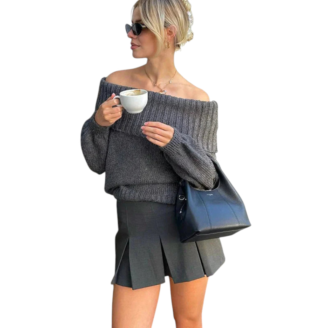 Ella-off-olkapäällysteinen villapaita tuo esiin hienostuneen ja trendikkään ilmeen. Sen pehmeä neulottu materiaali tarjoaa mukavuutta ja lämpöä kylminä päivinä.