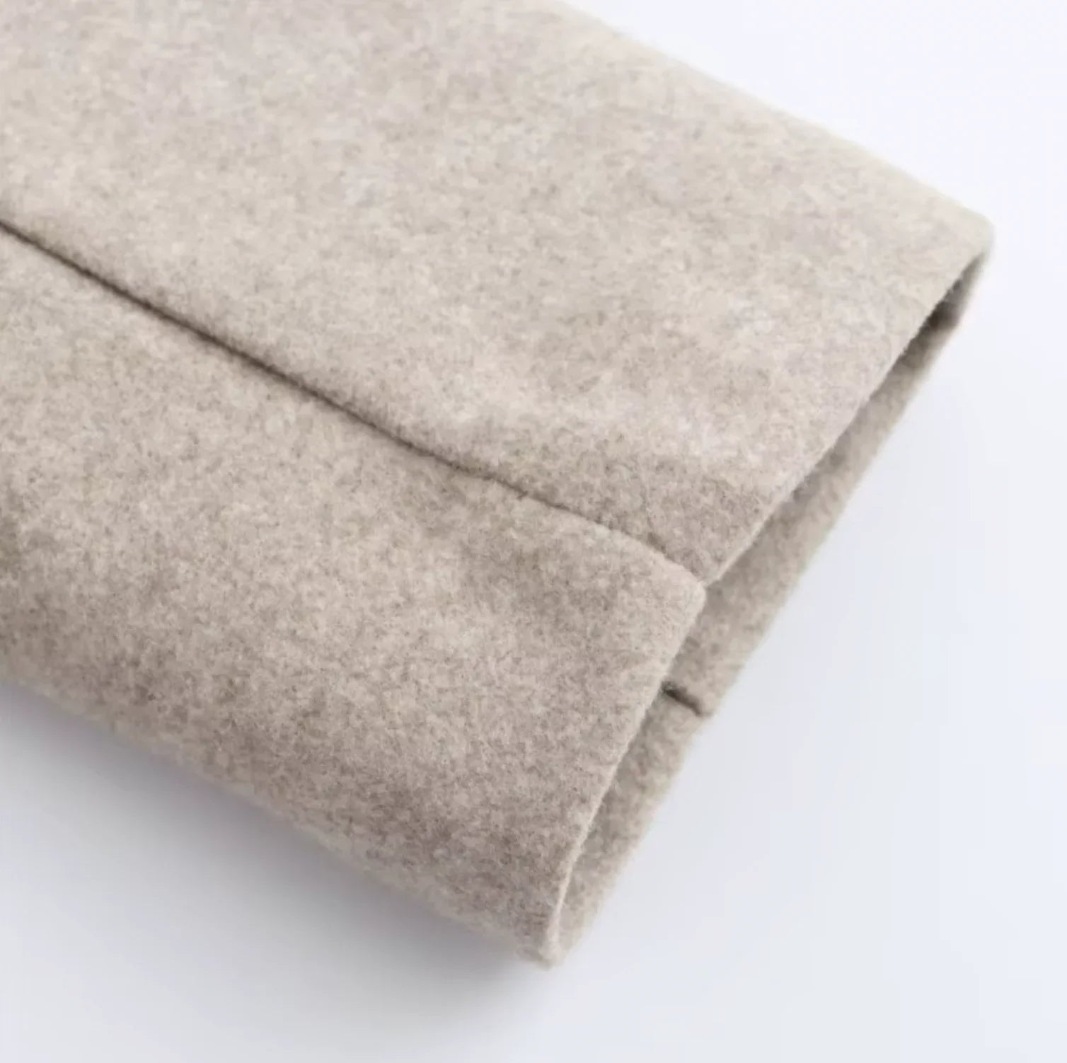 Takki on suunniteltu erinomaisella villasekoituksella, joka tarjoaa hyvän eristyksen ja kiillotetun ulkonäön. Vyöllinen siluetti imartelee vartaloasi ja korostaa vyötäröäsi, luoden elegantin ilmeen, joka sopii sekä arki- että muodollisiin asuihin.