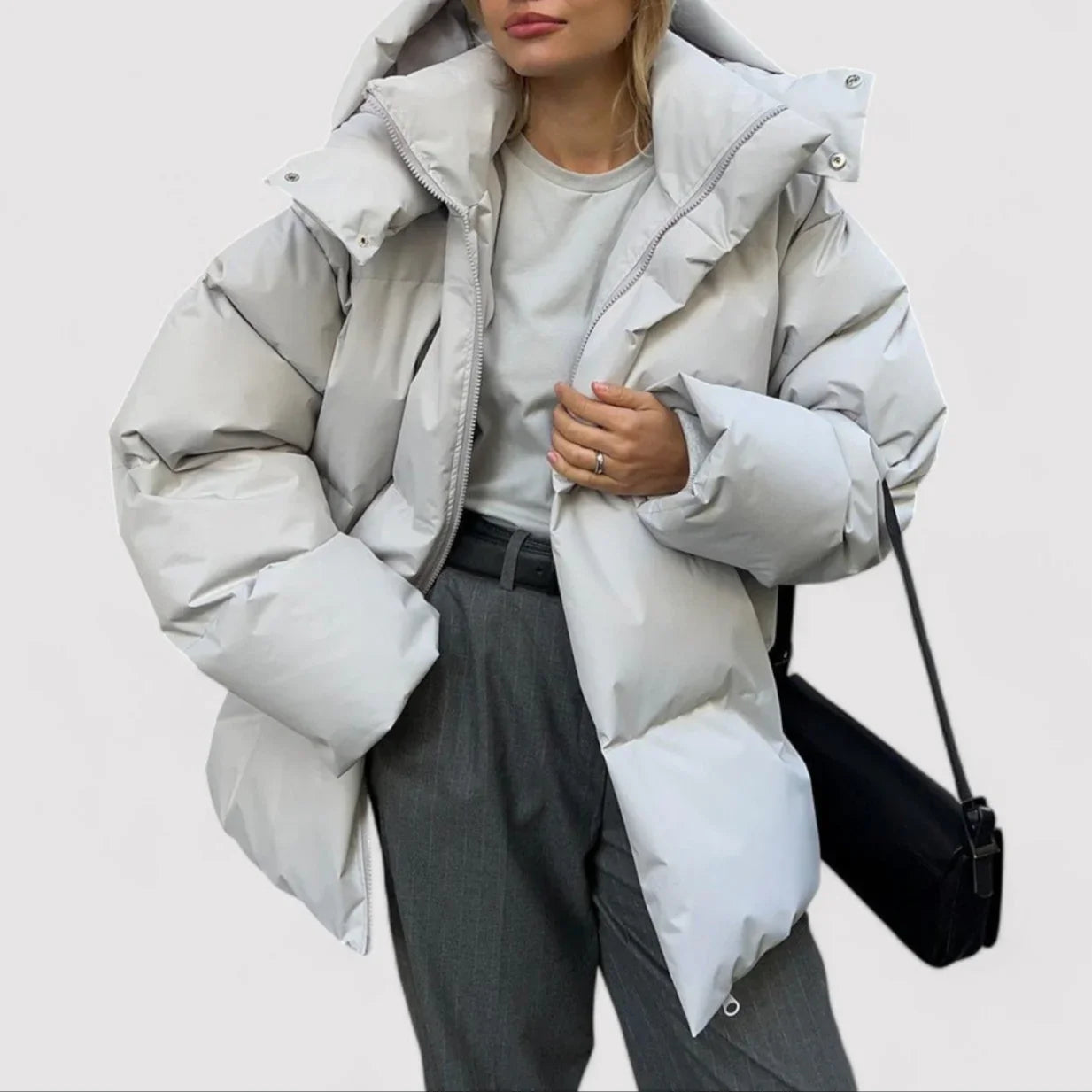 Pysy lämpimänä ja tyylikkäänä tänä talvena naisten ylisuurella puffitakilla. Tämä modernille naiselle suunniteltu takki yhdistää rohkean tyylin ja mukavuuden, tehden siitä olennaisen lisäyksen talvivaatekaappiisi.